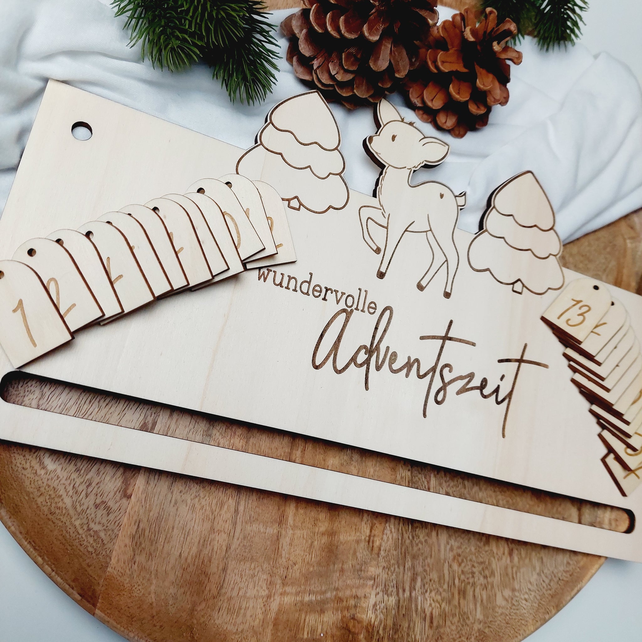 Dieses zuckersüße Adventskalenderbrettchen zaubert ein Lächeln in jedes Gesicht und lässt kleine Kinderaugen wie Sterne leuchten.