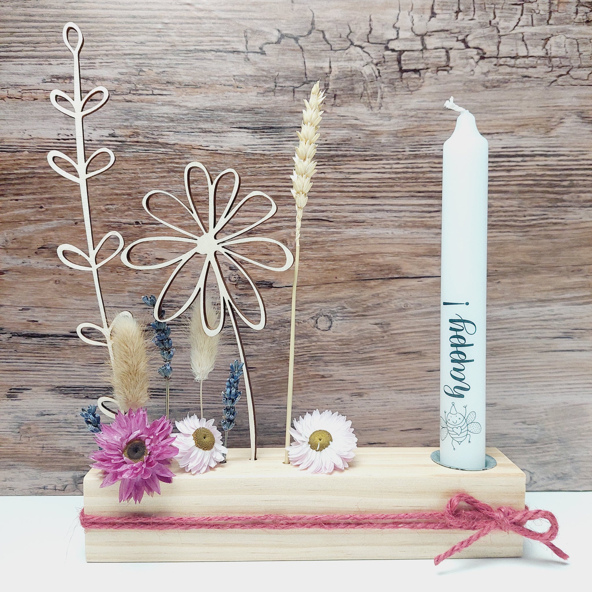 Das Flower Board ist eine spezielle und wunderschöne Dekoration. Mit Trockenblumen oder Holzsteckern arrangiert wird es zu einem einzigartigen Schmuckstück. Im Metalleinsatz kann eine Stabkerze festgesteckt werden. Hier bitte darauf achten, dass die Trockenblumen nicht Feuer fangen. Daher nie unbeaufsichtigt stehen lassen.