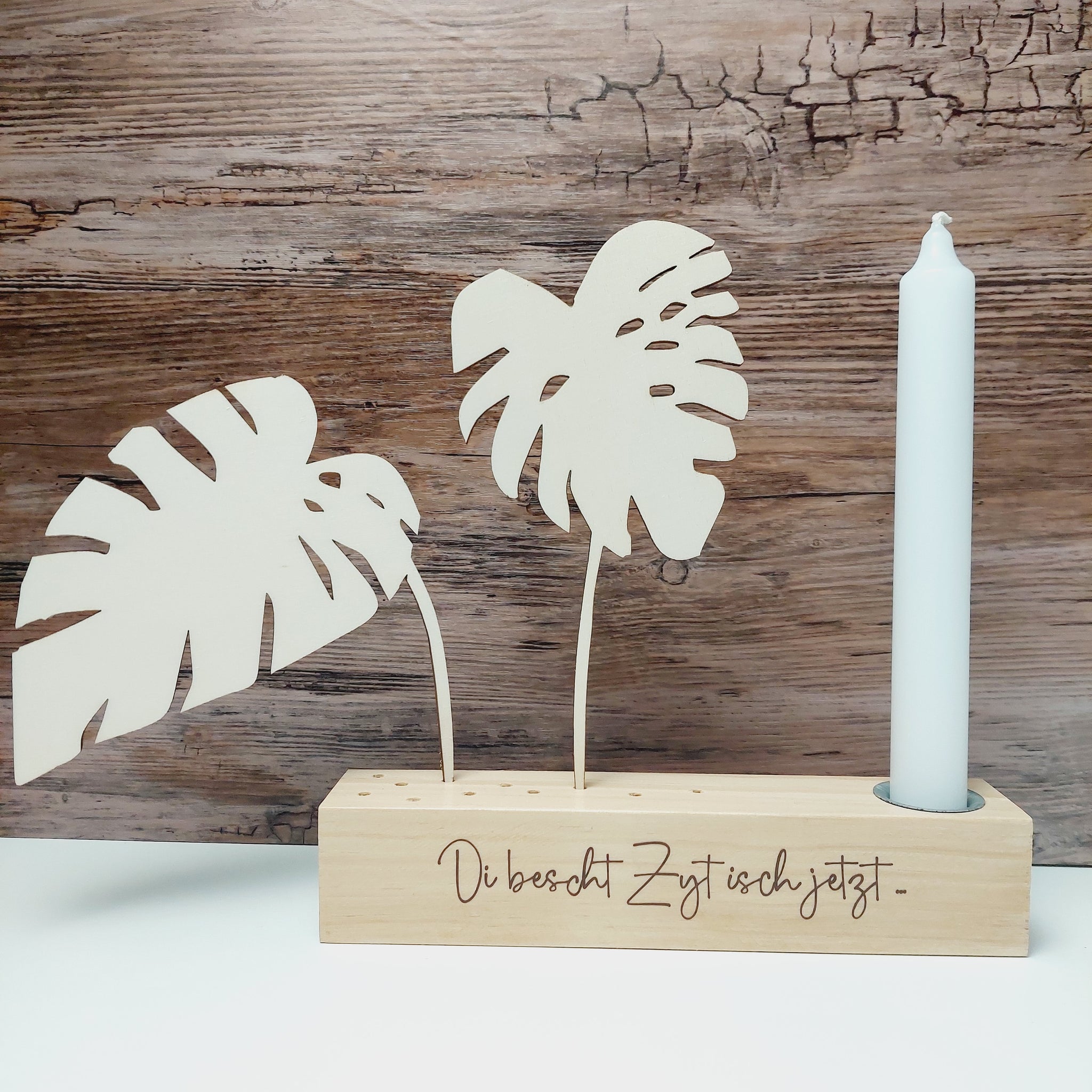 Auch für Hochzeiten und Feiern ist dieser Kerzenhalter aus Holz die perfekte Tischdekoration.