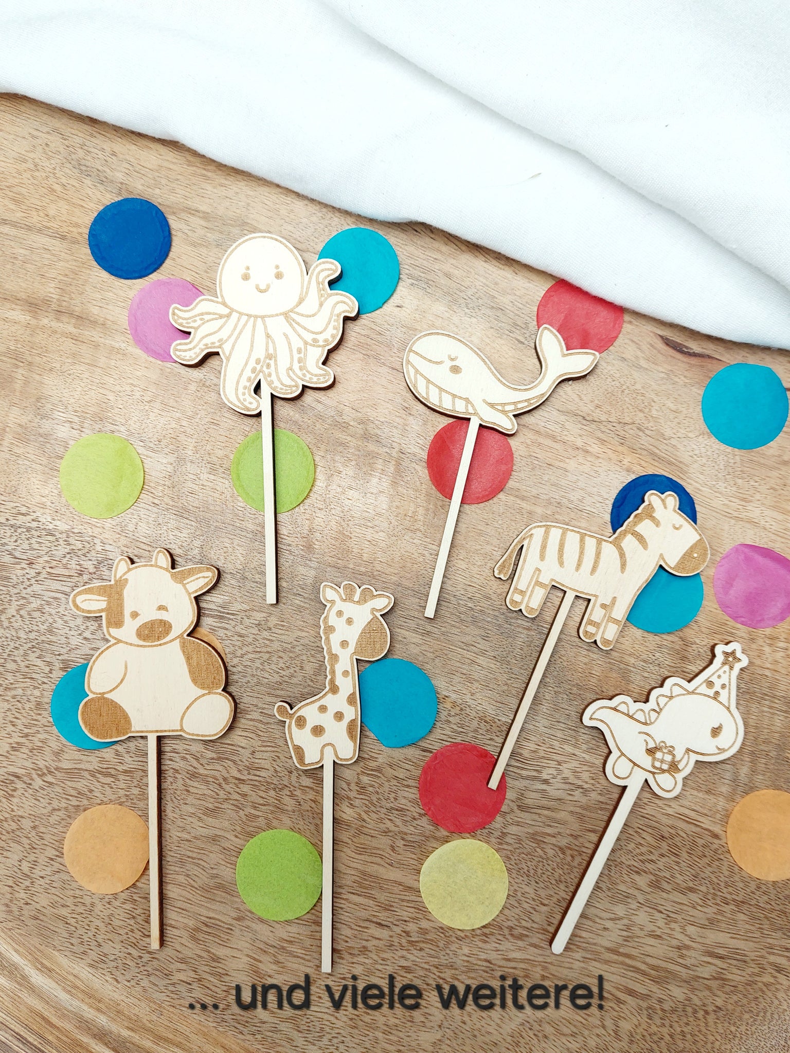 Diese süssen kleinen Cake-Topper eignen sich super um die Geburtstagstorte oder Cupcakes zu dekorieren und sind perfekt kombinierbar mit einem Zahlen- und/oder Names-Topper.