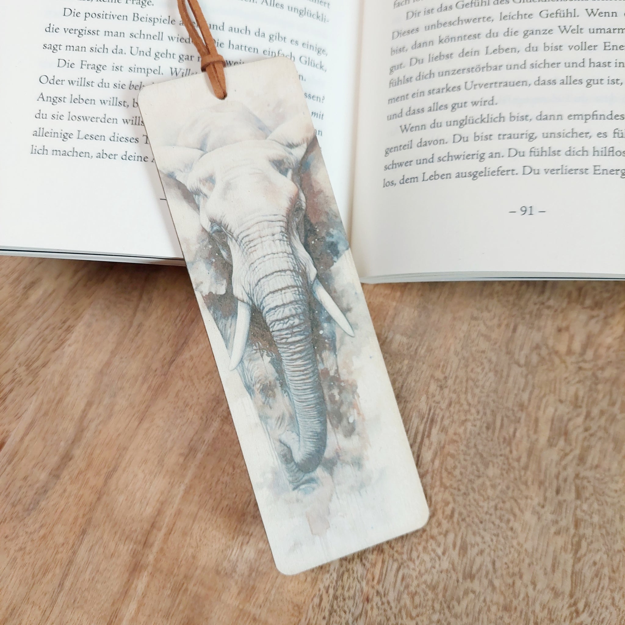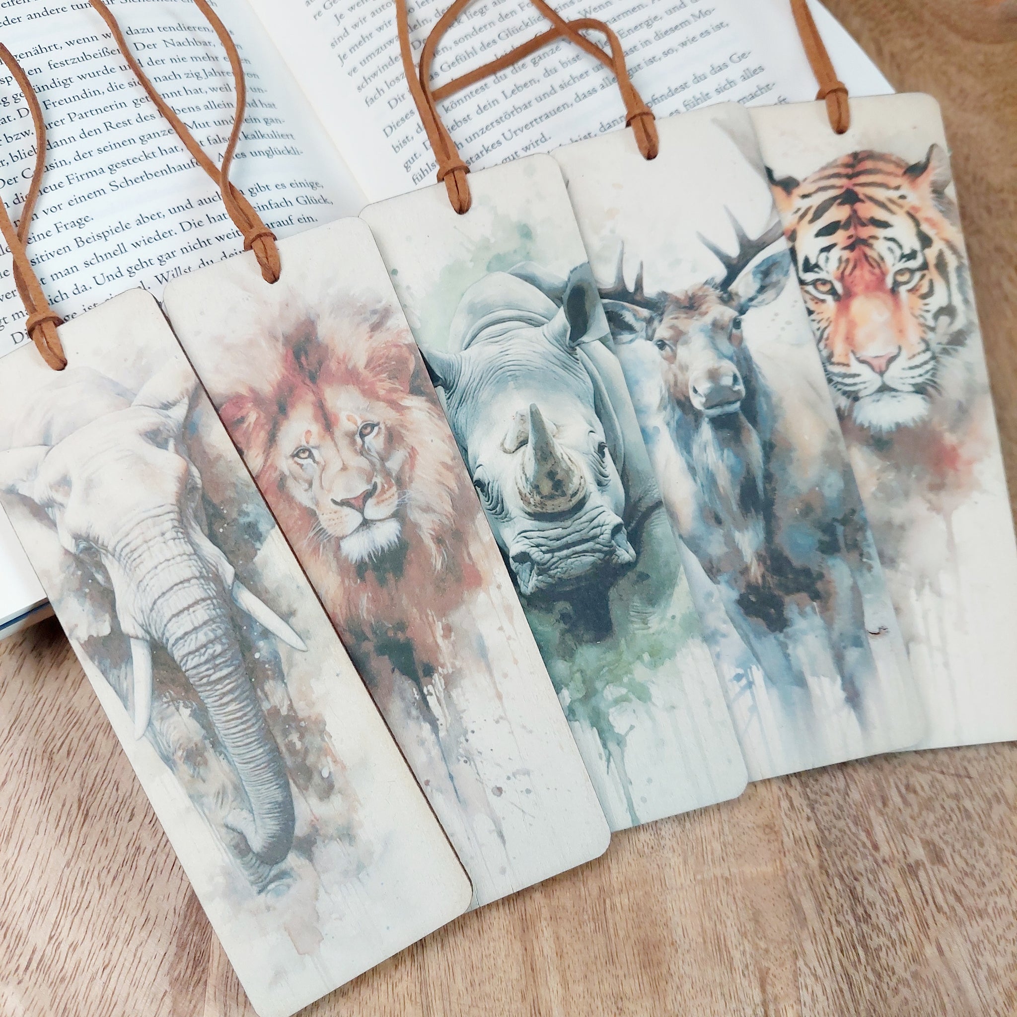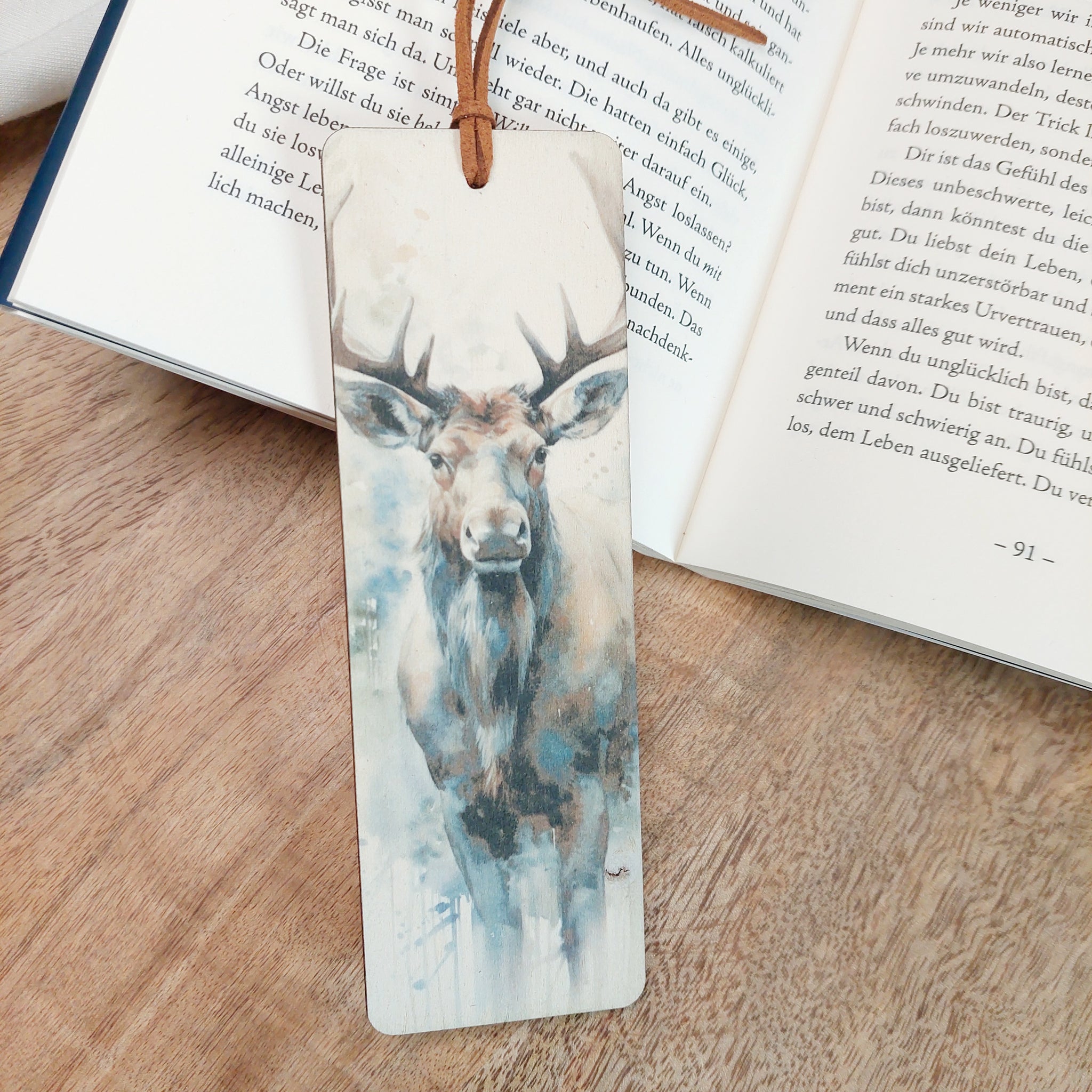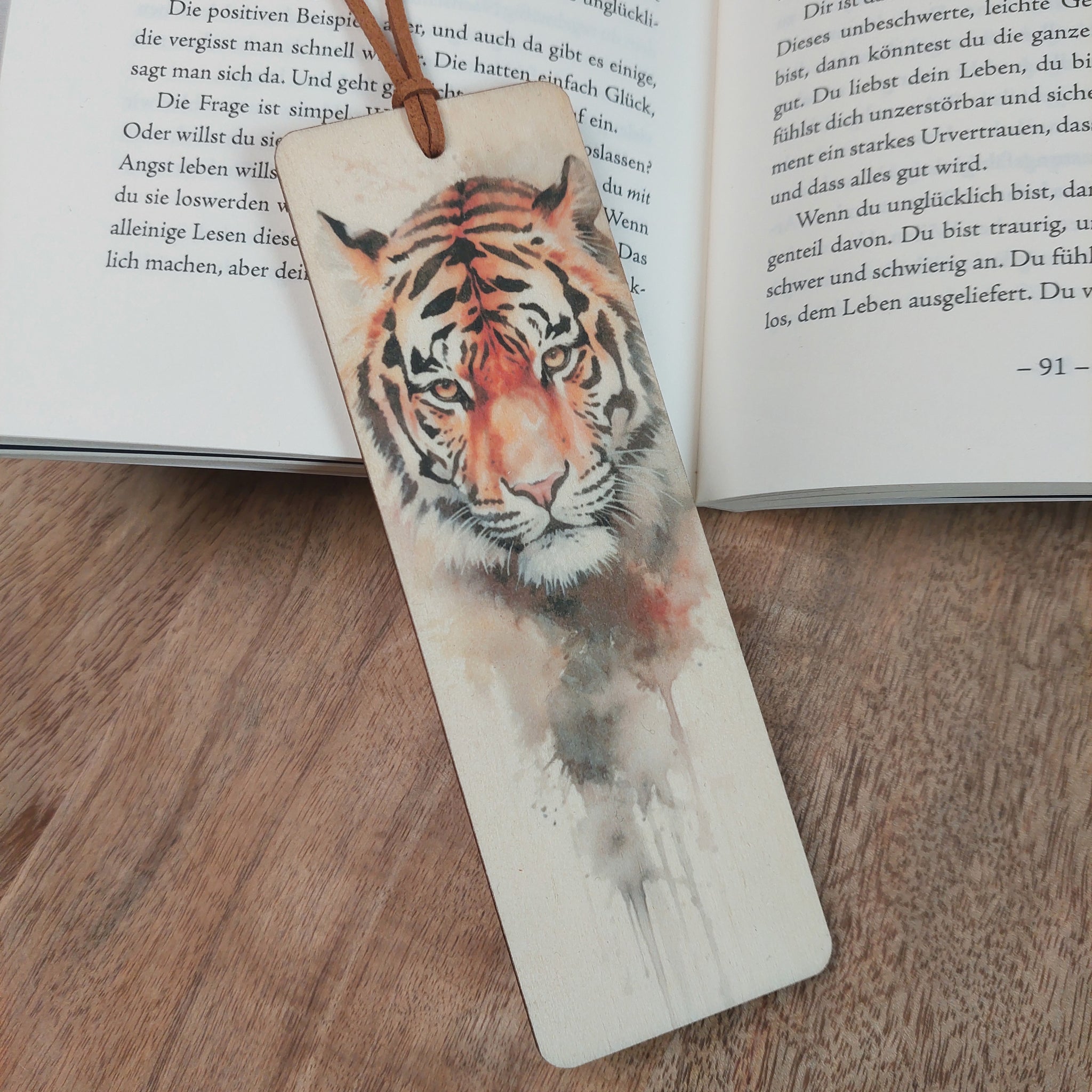 Liebevoll gestaltete Holz-Lesezeichen - so liest man gerne.