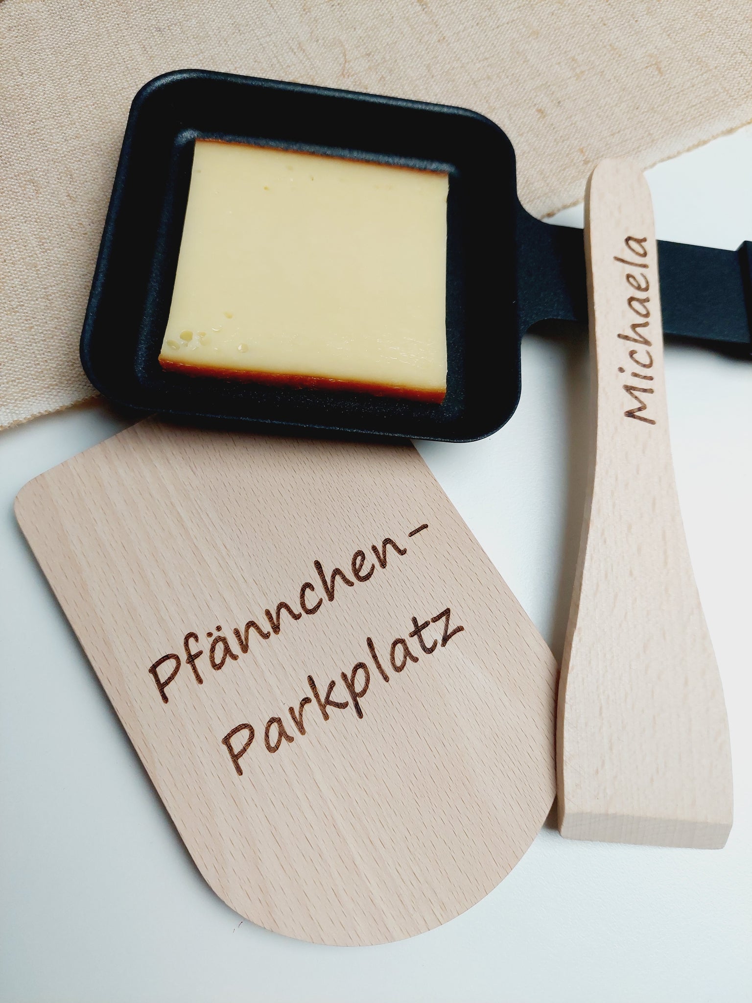 Wohin mit den heissen Raclette-Pfännchen? Mit diesem Untersetzer erübrigt sich die Frage und er passt ausgezeichnet zu einem gemütlichen Raclette-Abend. Die individuelle Gravur verleiht dem Untersetzer zudem einen einzigartigen Charakter.