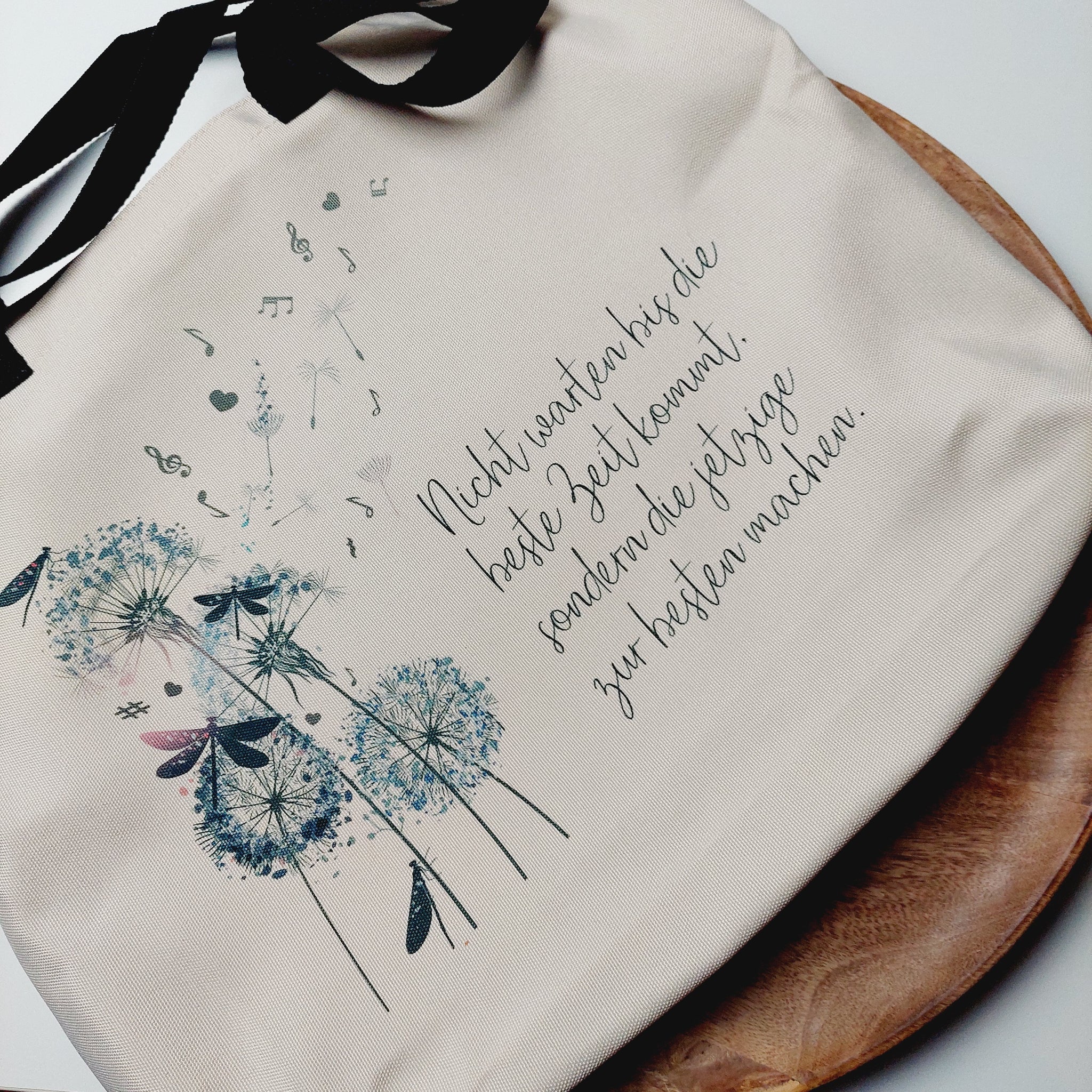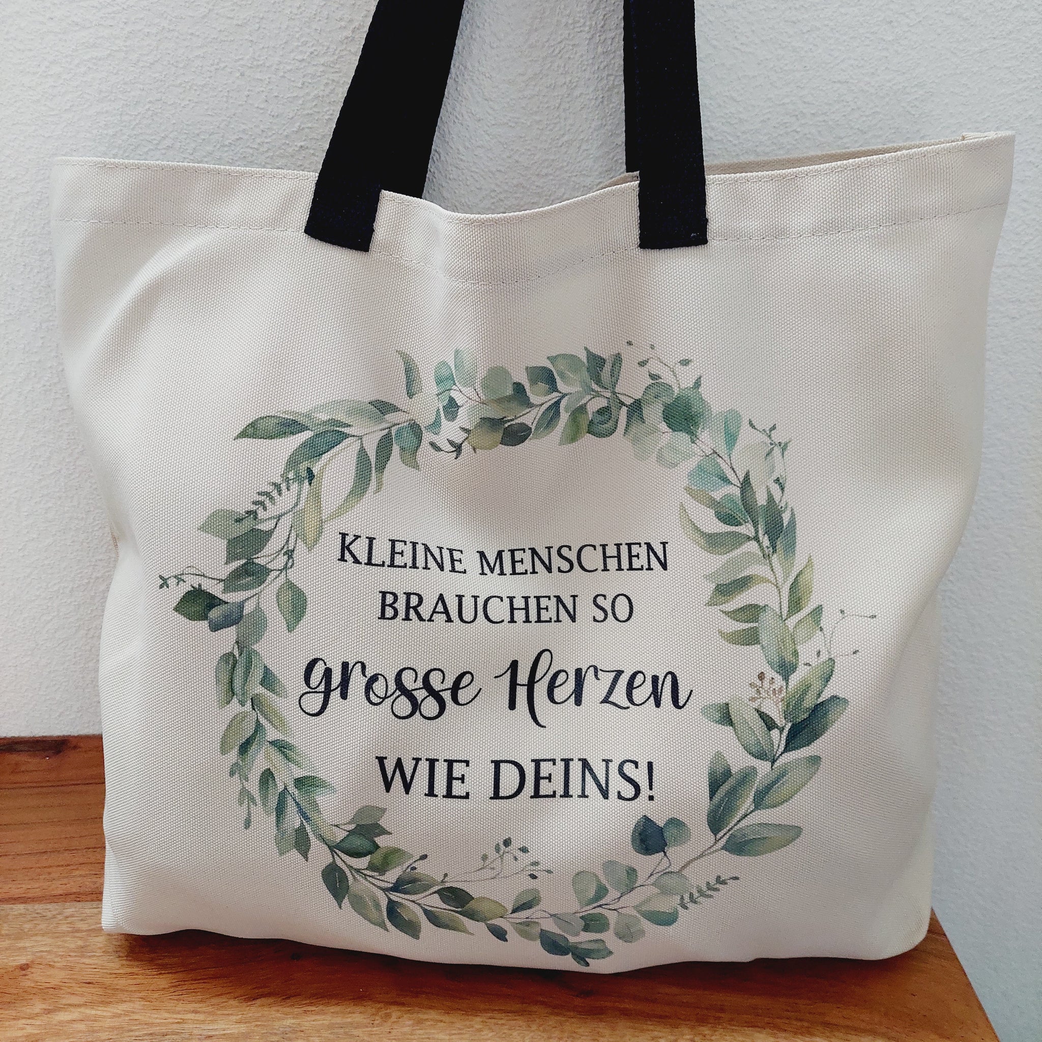 Diese praktische Einkaufstasche mit schwarzen Henkeln bedrucke ich dir gerne mit deinem Wunschmotiv.